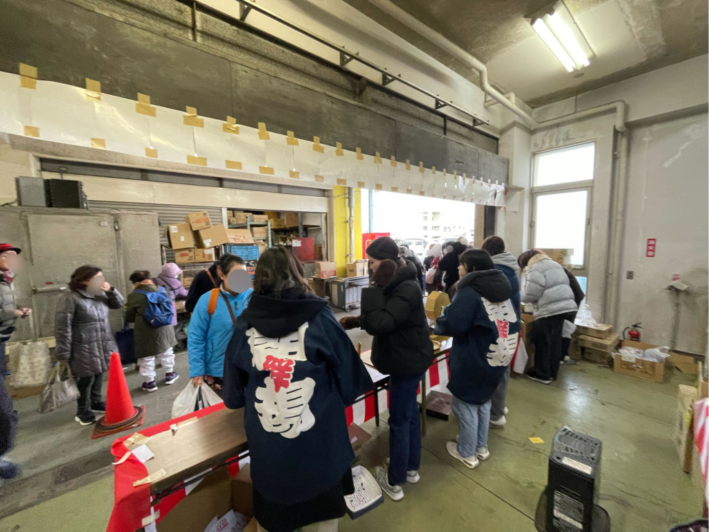 市民感謝デーは、毎月第2・第4土曜日に開催されており、通常は一般の方が入場できない水産棟でお買い物ができる特別な日です。新鮮な食材を購入できるだけでなく、市場ならではの食事を楽しめる点も魅力のひとつです。今回は年末の特別企画として、12月25日から27日までの期間で「歳末市民感謝デー」が開催されました。最終日の27日は、買い上げ金額に応じて参加できる抽選会も行われました。