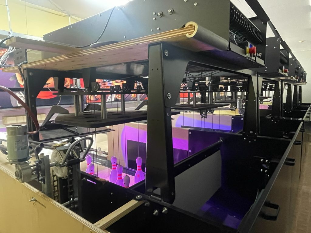 ストリングピンセッターは、ピンが一本一本紐で吊るされているため、コンパクトな機械となっており比較的設備を導入しやすいそうです!