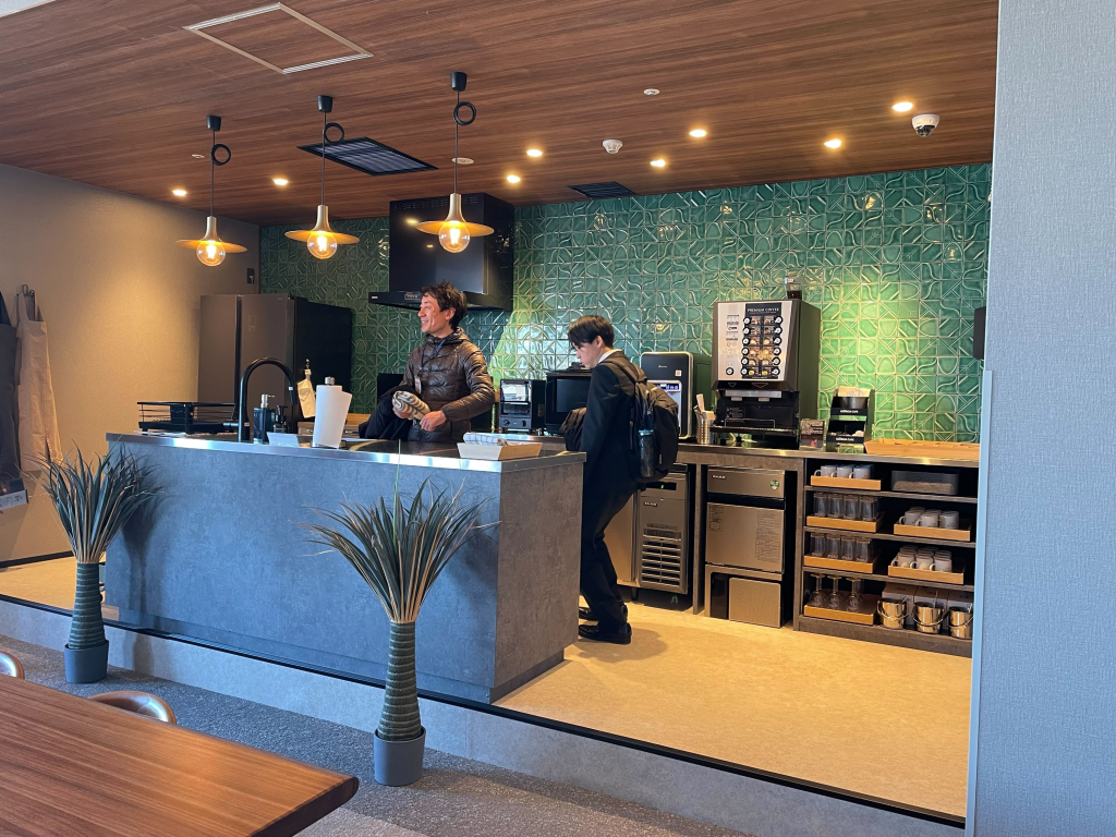 ラウンジルームには7:00~24:00まで使えるセルフキッチンがついており、持ち込んだ食材を自由に調理できます。
