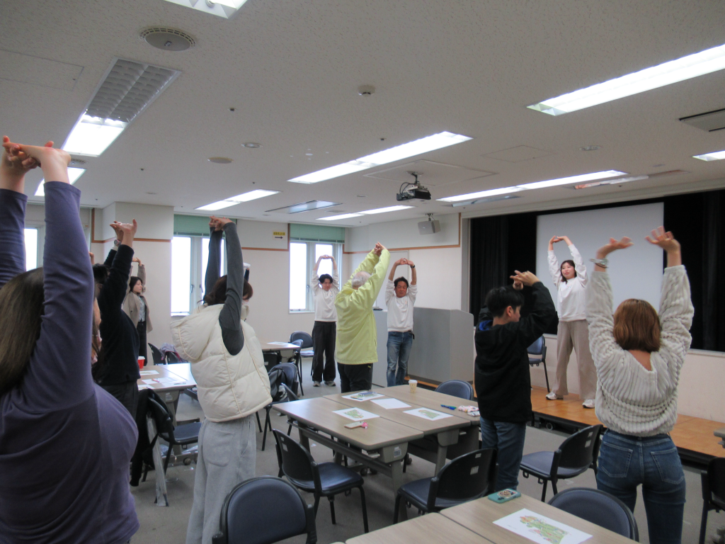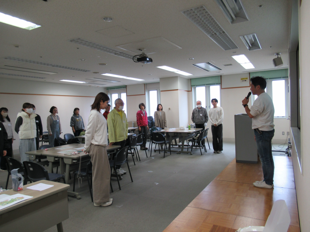 まずは室内で、理学療法士による講義と準備運動からスタート。